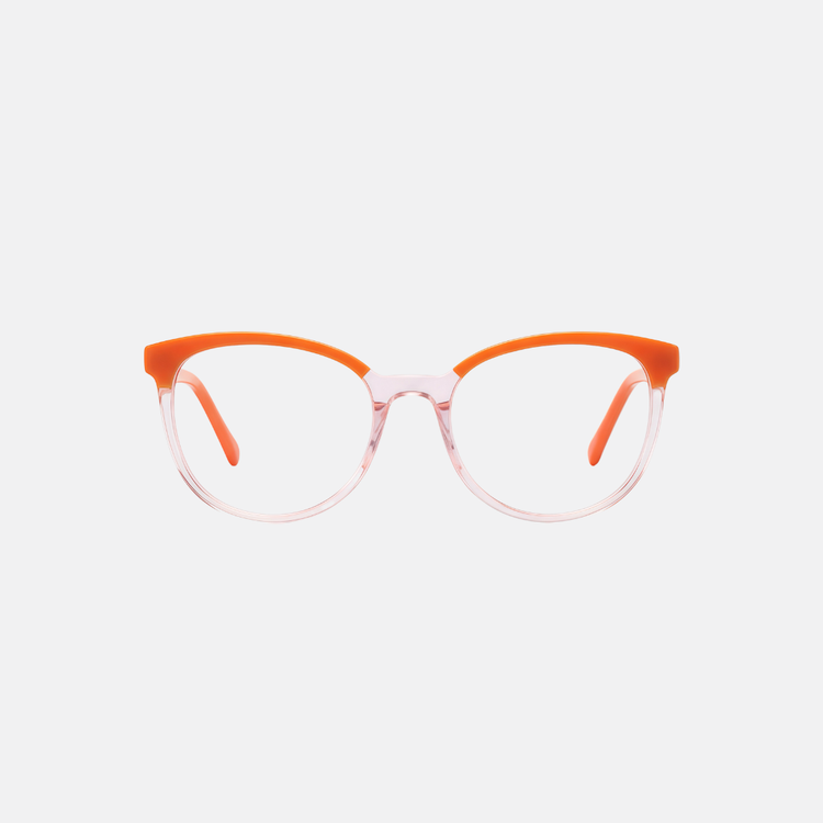 Bright, playful, and full of personality, the EMILY brings a fresh twist to a classic feminine silhouette. Crafted in a beautiful gradient acetate that shifts from soft pink to vibrant orange, EMILY offers a lively, uplifting look while maintaining lightweight comfort and refined shaping. The gentle upswept design adds subtle lift and elegance, making it a joyful everyday frame with distinctive charm.
